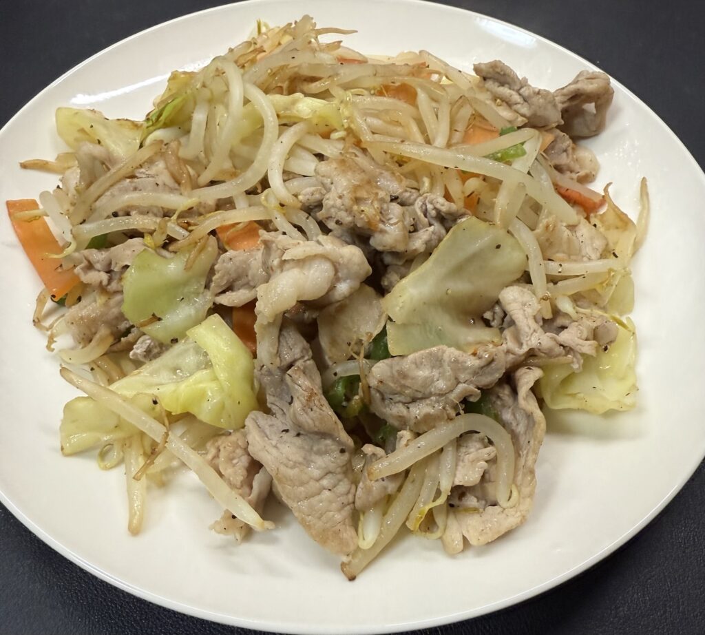 疲労回復のためにも、豚肉でしっかりエネルギー補給。やはりこういう時は肉が一番効きます。