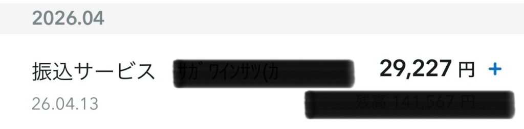 週末働いた副業の給料も無事に振り込まれていました。少しホッとしています。