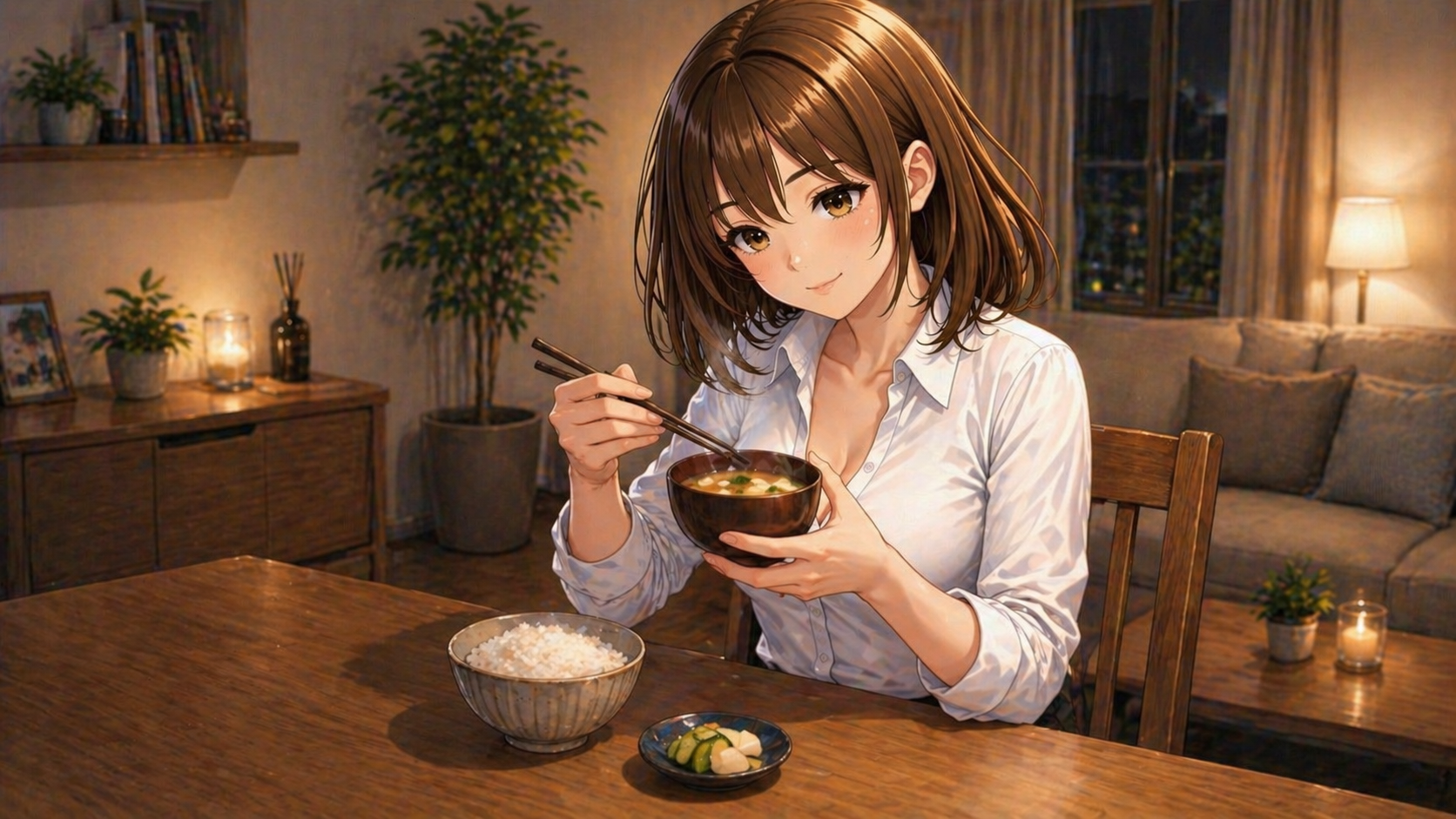 - サバ缶と豆腐の味噌汁